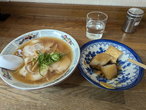 注文は中華そば(480円)&餃子(270円)、待つこと10分弱で先に中華そばがやって来ました。シンプルなビジュアルは好感が持てますね、スープは王道の鶏ガラ系、スッキリしたくせのない味わいです。