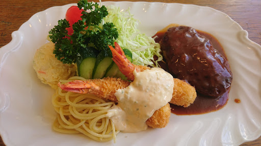 Read more駐車場有り☆ 今回は親と一緒に初訪問☆ お昼になる前に訪れたので、その時は一組しかお客さんいなかったけどお昼になった途端、次々お客さん入ってきて、あっという間に満席になってました🍀 食べたいものが決まったらテーブルに置いてあるボタンを押してオーダー☆ ハンバーグミックスとエビフライカレーをオーダーしました☆ ハンバーグ柔らかくて美味しかったしご飯の量も、しっかりあるのでお腹いっぱいになります☆ カレーも美味しかったです☆ 店員さんは淡々とした接客だけど悪くはないです☆ またハンバーグやカレー食べたくなったら寄りたいお店です☆
