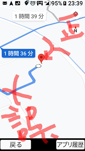 Googleマップの指示した通りに行くと、おそらく個人の敷地内に侵入する事になると思います。 図のように反対側から行くと正規の入口があるようです。