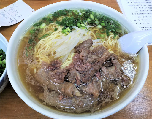 県外から来られた方に一番食べてほしいのは牛スジラーメンです。 牛骨スープに牛スジの旨みが加わった、いのよし最強のW肉汁スープです。 牛スジラーメンには醤油ラーメンのスープが使われているので、醤油ラーメンを頼むなら牛スジラーメンをおすすめします。 他の牛骨ラーメンの店にも牛スジは置いてますが、ここのはちょっと次元が違います。 牛スジ本体もさることながら、味付けがまた秀逸で、スープの味を損なわないどころか、 「これがいのよしの醤油ラーメン本来の味なのではないか」と感じさせるほどスープと相性がいいです。 醤油ラーメンのスープを飲んだ後に牛スジラーメンのスープを飲んだら、醤油ラーメンを頼んだことを多分後悔します。 私がいのよしに誘って醤油ラーメンを頼んだ人は皆、牛スジラーメンのスープを一口味見して、「牛スジラーメンにすればよかった」と言っています。(普通の醤油に比べてダシが効いてて抜群に美味いとのこと)