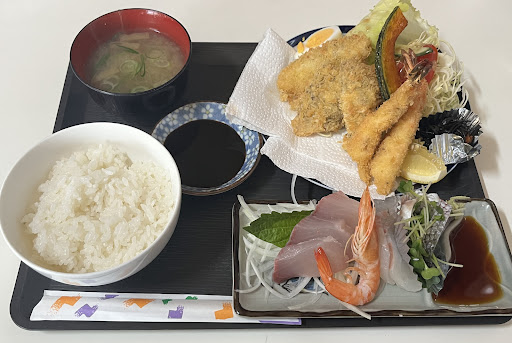 Read more本日のお魚フライ定食をいただきました。フライはアジとエビで衣はサクリと揚がっています。刺身はタイとカンパチですが、茹で海老と鯛皮の湯引きまで付いてきてとってもリーズナブル。副菜のヒジキも海藻らしいコリコリとした食感で美味しかったです。 中華セットは、中華そばと半チャーハン。中華そばはイリコ、カツオ、昆布ベースのあっさり味。麺が柔らかく煮麺的な食感なので好みが分かれそう。チャーハンは、胡麻油が香りしっかり濃い味。半チャーハンでもたっぷりの量。 焼きそばは、熱々鉄板で提供されます。下に目玉が隠れておりボリューム満点。中華そばと同じ麺なのが柔らかい細麺が、鉄板に焼かれ所々カリカリになっているのが美味しい。 初訪問なら、お...