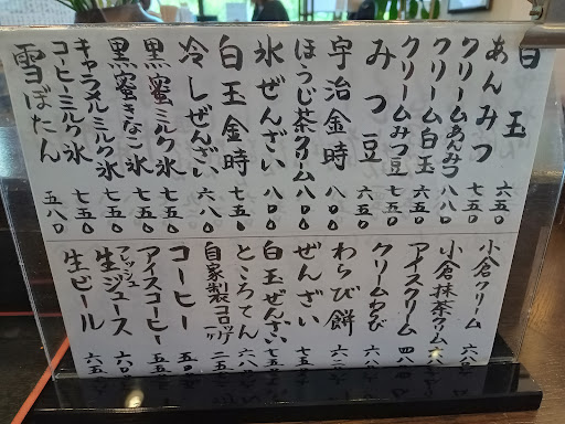 Read more猛暑なので高齢の母と懐かしい感じのするこちらで涼を取りました。店舗は2階にありますが、エレベーターがあるので助かりました。昔の呉市文化ホールの2階にあり、お昼ご飯も甘味も楽しめます。美味しそうな甘味が目当てでしたが、お昼も頂きました。麺類や丼物、おいなりさんやコロッケなど、人気メニューがたくさんありました。麺類も同じ温かいうどんでも、麺の種類が違うことに感動しました。葱の種類も切り方も違います。お店のこだわりを感じました。お味は後で頂く甘味がより美味しく感じられるであろう、 やや甘さ控えめのうどん出汁。美味しかったです。麺、葱、具、おだしのハーモニーが丁度いいです。店内は真ん中に囲炉裏を思わせるような設えで、周りにぐるりと座れるようになっています。中央の生花がきれいでした。囲炉裏の上には大きな風鈴や紙でできた金魚などいろいろぶら下がっていて、目を楽しませてくれました。テーブル席もたくさんあり常連さんが入れ替わり立ち替わり来られ、地元住民の大切なお店だと感じました。もちろん私のように20年以上ぶりの人にもほっとできる素敵なお店でした。甘味は宇治金時を母と半分ずつ頂きました。宇治に変身した滑らかな氷に絶妙な金時がかかり、手作り感のある白玉がほんのり温かく2つのっていました。全体的に甘さ控えめなので金時とのハーモニーが最高。手作り白玉を温かくトッピングしてくれるお店は今は貴重なのですごく嬉しかったです。お店の雰囲気も店員の皆様も気持ちよく、メニューも中身もグッドなので、この暑い夏の楽しみにぜひまた伺いたいと思います。こういう昔からの味のあるお店が激減している昨今、正に貴重。長く続けてくださっているお店の方に感謝しかありません。呉市は新しくなっていないエリアは昭和の名残りが残っているので、街ブラするだけでも楽しいです。楽しいお昼のひとときをありがとうございました。応援し...