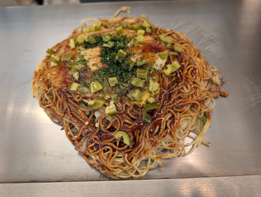 Read more麺がパリパリに焼かれて前面に来てるので麺パリ主張の店かと思いきや、野菜もホクッとシナっと良い食感で好印象。 二つの相性の良さというか融合の楽しさというかが楽しめてとてもレベルの高いお好み焼きだと思いました。 そしてもう一点見逃せないのが、ここのハラペーニョトッピング。 前は横川のロペズさん系列によく見られていたハラペーニョトッピングですが、もう今では結構定番の仲間になりつつありますね。 その中でもここのハラペーニョ、なかなか効きが強め! 酢漬けに見られるジューシーさと言うよりどちらかと言うと少し汁感は無いけれど、辛さが他所よりワンランク上でちゃんとハラペーニョ特有の酸味や風味がしっかりしてて、これがとても相性抜群! これ足しただけでアテ感がグンと上がってビールがグイグイ進みます。 是非皆さんにもチャレンジしてみていただきたい、とても...