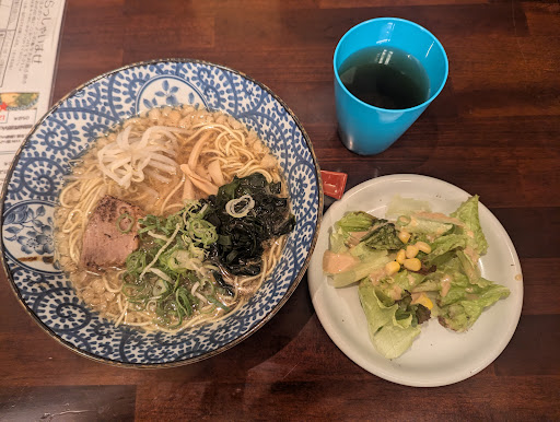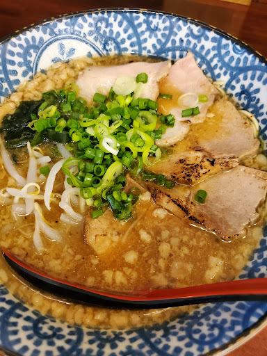 呉駅のすぐ隣にあるラーメン屋さんです。煮干しで出汁を取ったスープが自慢のラーメンですが、注文方法が少し変わっていて、席に着くと用意されている用紙に希望するラーメンの番号や味、麺の固さや量、ネギの有無や背脂の量等を記入してオーダーします。その用紙の最後には、来店サービス?で麺の1.5倍増量かサラダ一皿が無料で選べます。これは嬉しいポイントでしょう。もちろん必要ないならカットする事も可能です。今回は味噌の炙りチャーシュー麺を注文。余り待つことなく運ばれて来ました。熱々のスープから、うっすら湯気が立ち上ぼり食欲をそそります。一口飲んでみると、背脂がいい感じに味噌とマッチしていて旨い。味の濃さは基本から濃いめ、薄めに変更出来るのですが、私には基本でちょうど良く感じます。麺の固さも基本でオーダーしましたが、これも私の好みにぴったりの固さでした。肝心のチャーシューは小ぶりですが枚数が多く、味もまあまあに感じました。具のメンマとワカメ、もやしはもう少し増量していただけると嬉しいのですが・・・。麺は細くも太くもない丸い断面のストレート麺で普通に美味しいのですが、なんとなくインパクトに欠ける感じがして、相対的にスープがとても美味しく感じました。これは次回の訪問で確かめてみる事にします。又、駐車場は用意されていないのですが、近隣にコインパーキングが点在しているので不便を感じる事はないでしょう。最後に一つ気になったポイントですが、どうも店内の雰囲気が暗く感じました。店員さんの女の子はとても感じが良く、明るい接客で好感が持てるのですが・・・。理由はハッキリしないのですが、改善された方が良いのでは?と思えました。いずれにしても、呉駅から徒歩0分で本格的なラーメンが味わえるこちらのお店は、オ...