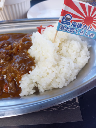 お目当ての海自カレーですが、潜水艦くろしおのレシピを受け継いでいて、後味が少し重たい辛味を感じるカレーらしいカレーでした。セットでついてくるサラダと併せて召し上がってください。 小さな小旗が付いてきて、思わず持ち帰ってしまいました。