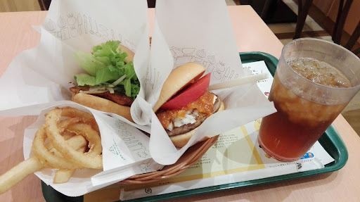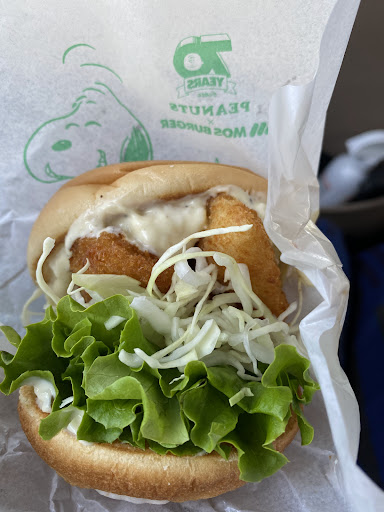 Read moreここのモスバーガーがどうとか言う話ではないのですが、あまりにも期間限定真鯛バーガーが美味しかったので。 鯛ってパサパサしてしまう時あるじゃないですか。 それが中はしっとり外はカリカリ。と揚げ物の常套句を使いたくなるような味わい。 しかも愛媛産となると、養殖でしょうけど、嬉しいです。バーガー類の中でもダントツの値段設定なのですが、満足です。ただ、マヨネーズ好きな方に限らせただきます。あっさりな鯛カツに対して、マヨの味が結構主役です。 ごめんなさい。そういえば。お店の対応は、普通に良くて、トイレ綺麗でした。狭いけど。駐車場は広い。 バンズの焼き具合が良かったから美味しかったのもあるのかな??また食べたい! 補足。スヌーピーの紙袋、バーガ...