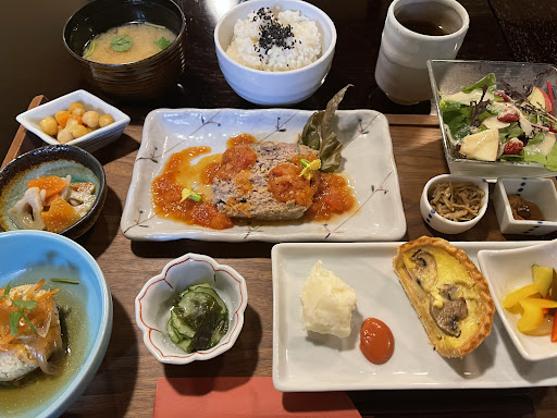日曜ランチ終わりギリギリに再トライしたところ、幸いランチを頼むことができました。 注文したのは目玉メニューの「Shunpuランチ」 地産の野菜を多く使ったピクルスやサラダなど、10品目以上の小皿が楽しめるお得なセットでした。特にマッシュルームとベーコンのキッシュが美味しかったです🤤