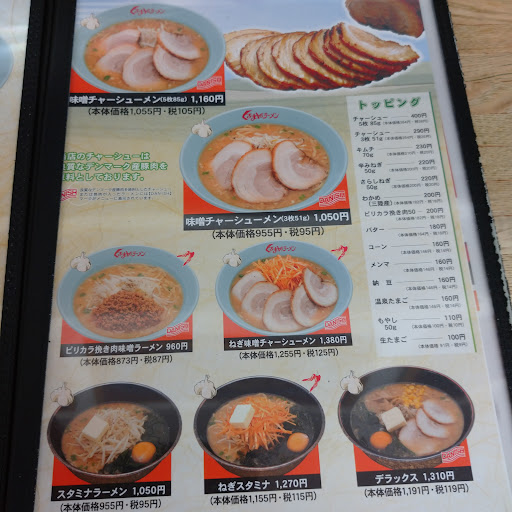 Read more平日のお昼に利用しました。 結構混んでます。 店内はカウンター、テーブル、小上がりがあります。小さい子ども連れでも他のお客さんは気にしないと思います。 何回か利用してますが、個人的には味噌が好きです。病み付きになるあの味がいいですね。他のお客さんも味噌を頼んでる方がほとんどでした。 写真は味噌のチャーシュー3枚です。半ライスはサービスでした。 とにかく、店員の方々が元気が良いので気持ち良く食事ができます。 支払いは、現金、クレジット、Suica等の交通系のカードが出来るようです。QRコード決済は対応してませんでした。 十字路交差点の一角にお店を構えているので、進行方向によっては入りにくいですし出にくいです...