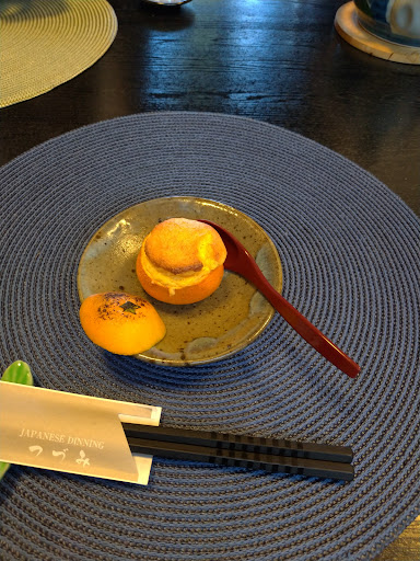 Read moreお寺帰りコースを予約して入店。 式が早く終わってしまい、お店に伝えた時間より早く入店しまったが快く入れて呉れたので心象良し。 一人二千円のコースを予約していたらしいが、前菜に茶碗蒸しの後懐石風の料理、デザートというラインナップ。 茶碗蒸しはふわふわで恐らくカツオの出汁っ気がしっかりありとても美味。 料理は煮物、燻製カツオ、天ぷらが上品な味付けで印象に残る、他ミョウガの握りか爽やかだった。 残念なのはサラダがドレッシングありだったが少し苦味があり個人的には美味しく感じなかった。 そしてデザート、写真でもあげた蜜柑のスフレ。 これが美味しい、女将さんはラッキーだよと言っていたので不定期で出す人気が高い季節のデザートなのだろうが、甘みは砂糖等の甘みではなく、完全に蜜柑の甘みで後味に少し苦味が来るデザート。 甘いものが少し苦手な人も美味しく食べられるデザートだと思います。
