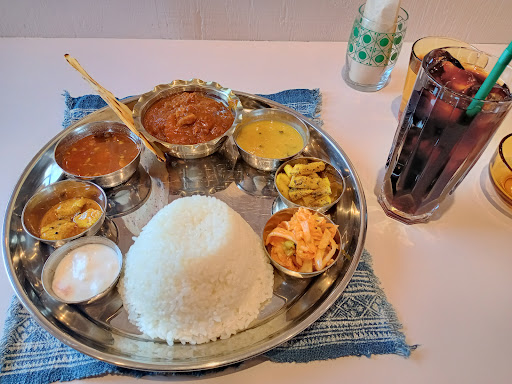 まず、メニューは毎回変わったり変わってなかったりなので、それも楽しみである。メニューを開いて、カレーを選び→ご飯の量と飲み物(セットが安い)を注文する。お米が、これまた旨いので一粒すら逃したくなくなる。飲み物は、私のオススメはアイスコーヒーかマンゴーヨーグルトだ。どっちもうんめーの、カレーにあうし。 ⚠️初めての方は、食べ方が掲載されてるしお店の方が教えてくれます。 ①プレートにのってる、ルー3種以外の具材4種類をプレートから出しテーブルに置く。 ②山の形のご飯を崩し、3種類のルーを混ぜるのだけど、お好みで混ぜる量を調整する。 ③具材も、4種類からちょこちょこ足して混ぜ混ぜして食べる。ただし、1種類だけ白い具材があるがヨーグルトであり、カレーに酸味をプラスしたい場合はかけて食べる。このカレーにヨーグルト合うので旨いです。 ④豆のせんべいは、直接食べてもよいが、ご飯に割ってパラパラかけてルーと混ぜると、こりゃまた旨い。そして完食してしまう。😋
