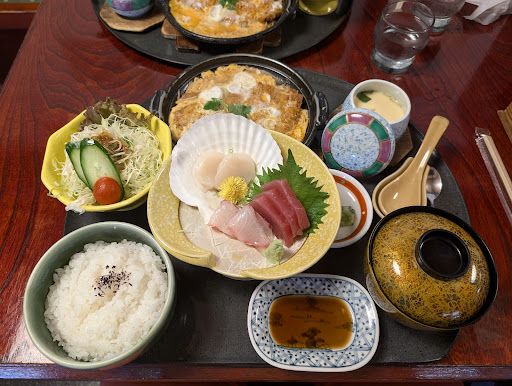 Read more初めて行かせていただきました。 開店時間前に店内に入れていただき、助かりました。 外が暑すぎて、地獄でしたから・・・店員さんの対応には感謝ですね。 日本食だけだと思ったら、結構メニューが豊富で、選択は多いと思います。 お客様も結構、多かったので・・・店員さんは忙しそうですけど、丁寧に対応していると思いました。 御幸御膳をいただきましたが、結構なボリュームで個人的には美味しかったですね。 貝焼きは初めて食べたので・・・よくわからないですが、鍋料理なのでしょうかね。 ごめんなさい初めてだったので、卵でとじた味噌味・・・食べ方が不明でした。 郷土料理なのでしょうかね。 今度行く機会があれば、ざる蕎麦と天婦羅を食べたいですね。 雰囲気もいいし、お客様も多いの...