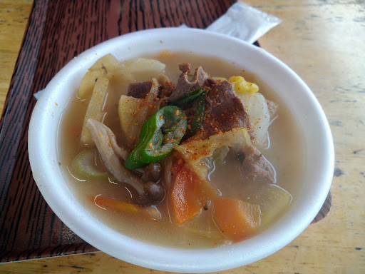 Read moreボタン汁600円です。とっても愛想の良いマダムがよそってくれました。お味も最高! 家族で、牛もつ煮丼、とろろ丼、唐揚げ、フライドポテトもいただきました。どれも美...