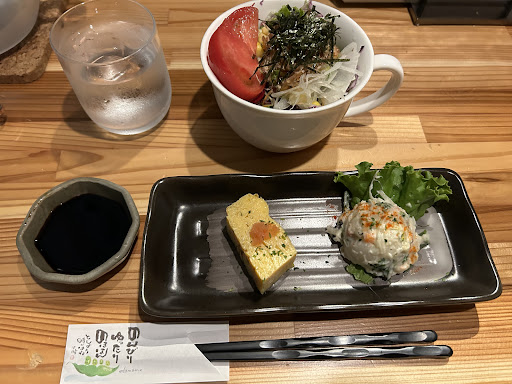 Read moreコース注文で席を予約できるとの事でランチ2500円コースで予約しました。 正直ガッカリました。コースはお得感が全くなく、普通に並んで定食を注文した方が海鮮丼などお刺身たくさん乗ってました。 写真の通りコースはお刺身もちょこっとで特にお刺身新鮮って感じもしなかった。デザートもお皿は大きいですが、パンケーキとドライフルーツのいちご、イチゴは見た目も綺麗ではありませんでした。コースなのでデザートが出てきた時、コーヒーくらいついてくるかと思いきや、水のみ。がっかりでした。 最後の写真の秋刀魚の唐揚げは連れのコースのお魚です。 人気店の理由はランチのボリュームとお値段でしょうか? 今度は並んで海鮮丼でリベンジしようと思っています。 あと、靴箱がなく、脱ぎっぱなしの靴がずらっーと並んでいます。それに圧倒されました。また、ソファーが座りにくく、テーブルが高いのでソファーでも正座をしないと食べにくかったです。足が悪い高齢者はちょっと難しいかもしれません。私は次に来た時はカウンターに座りたいと思いました。 スタッフの対応はどなたも愛想良く問題はありませんでした。賑やかな音楽が流れており若者のお店という印象でした。 駐車場が混み、スペースが少ないので他の店舗の場所に停めがちですが、係のスタッフから移動する...