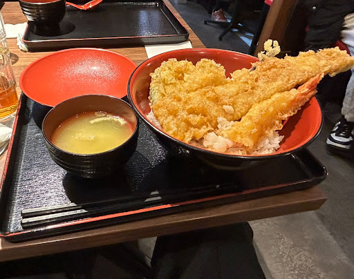 Read moreめっちゃ美味しい! この間友達6人で食べに行き、天丼、鳥丼?を頼みました。値段は、950円と850円だったと思います。1500円ほど持っていけば十分足りるかと思います。天丼は、味噌汁がついているもので温かく安定な美味しさでした。そして天丼自体は、かなりボリュームがあり特に穴子がものすごく大きく食べ応えがありました!外がサクサクで湯気が立ち中はしっかり火が通り美味しかったです😋備え付けのマヨと一味をかけて食べるのもオススメです!鳥丼は、少し濃ゆめで甘い味付けだったと友達が言っていました。これはマヨネーズとの相性抜群です!どちらも下の米は茶碗一杯ぐらいで具の方が多いです。2人用の椅子の席と4人用のイスの席があったと思います。少し狭いようにも感じましたが全然気にならないと思います!食べか...