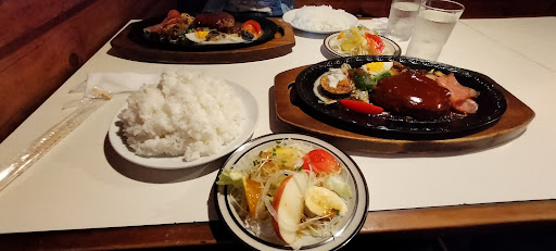 Read more昔からある老舗レストラン あかまつランチをオーダー サラダ メイン ごはん ドリンク で1100円。 メインは熱々鉄板の上に ひと口サイズの洋食おかずが たっぷりと盛り付けられている 口の中が濃くなりすぎないよう ところどころに野菜や 旬の果物が混じっている 柿やりんごの甘酸っぱさが 箸休め的な存在。