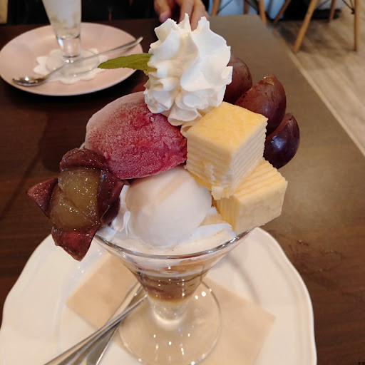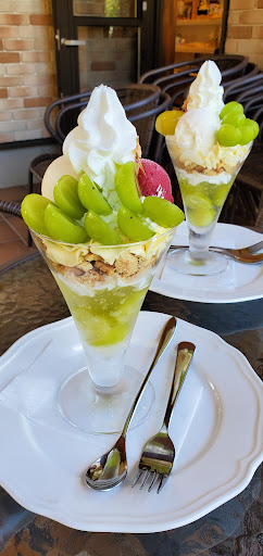 Read more11時半から営業となってますが、11時から空いているみたいてす! 日曜日の11時にお伺いしましたが、かなりの人気店で駐車場もなかなか停められませんでした。 予約も出来る様ですが、今回はしていなかったのでテラス席に案内して頂きました。 前払い制で、楽しみにしていたシャインマスカットのパフェを頼みました。 マスカットがたくさん入っており、他のアイスや生クリームも美味でした!ビスケットも入ってるのが嬉しいです。 お値段は1700円です。 また別のフルーツが出たときに利用したいです。 売り切れもあるみたいなので、土日に行かれる際は午...