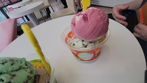 少し前バラエティパックレギュラー12個を頼んだ。 先客2名あり。店員は3名だった。(高齢女性と研修中新人2名) 時間があまりなく店員が3人いるからそんなに時間かからないだろうと思ってたら、新人2名に1つ1つ教えながら対応している・・・。お客も3組くらい増えたが対応変わらず・・・。 えっ?客みて多くなったら対応も変えろよ。と言いたかったがグッと堪えた。 高齢店員がチョコミントを冷凍庫から出したまま新人のレジトラブル対応してチョコミント溶け出してる! 別の新人に「溶けてるよー」と言うもどうしてよいかわからず。レジトラブル終了後戻ってきた高齢店員から「直しときなさい」と叱責を受けた新人( T_T)。心の中で「あんたが戻してないだけですけど」と突っ込んでやった。 結局アイスが出来上がるのに40分もかかりました(-.-) 最後アイスを渡されるときにあの高齢店員が来たら色々言おうと思ってたが、アイスを渡しに来たのは新人さんでしたので何も言わずに帰りました(_...