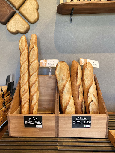 西鉄花畑駅前にある、庶民派に見えて実は本格派なパン屋さん。 店外に緑が飾られていたり、店内の棚に色んな可愛いオブジェがあったりと、ほんわかさせられる仕掛けが随所に施されているのがいいです(←棚の上に、「魔女の宅◯便」のキキの人形がありました)。 菓子パンが多めでハード系はあまり多くないですが、どちらもしっかり作られています。 クロワッサンはバターで作られていたり、素材も極力体にいい物を使用されているのに、お値段がかなり良心的です。 店員さんの接客も、笑顔が絶えず優しい感じなのがよく、楽しく買い物が出来ます。
