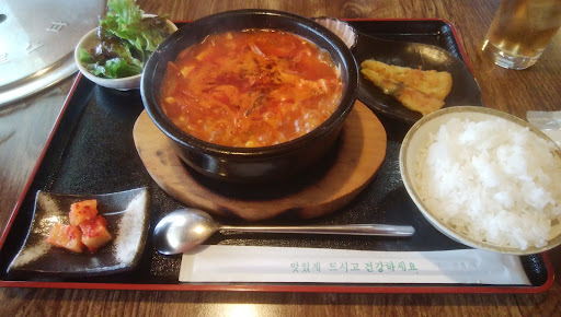 気になっていた韓国料理屋さんへ。 11時半開店で平日の12時前でしたが、もうすでに何組ものお客さんが。 1人ランチでしたがテーブル席に案内してくれました! 韓国料理でも一番好きなスンドゥブを注文。ランチ中はごはんセットかスープセットが無料で選べ今回はごはんセットに。待つこと10分くらいかな。あっつあつのスンドゥブ登場!! 超辛なだけあり私には辛かったですが、とてもくせになる辛さとお味。美味しい!美味しい!! 無我夢中でペロリと食べました。 因みに辛さは調整してもらえるみたい。 人気!だけあり、スンドゥブを注文しているお客さんは多かったです。 他にも沢山のメニューがあり、迷ってしまうほど。また絶対食べに行きます!ランチ制覇したい。 レジの所に食後のミントガム置いてあります。 ...