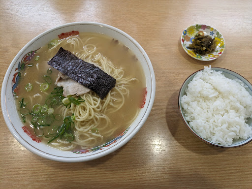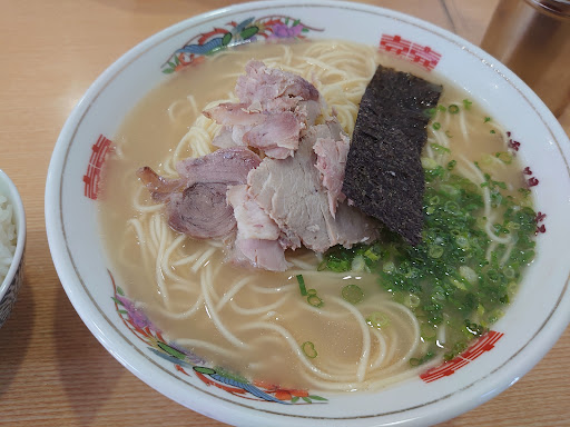 Read more久留米市六ツ門、国道209号線沿いにあるラーメン屋です。創業70年を超える、久留米の老舗ラーメン店ですね。専用の駐車場はありません。店内はカウンター席とテーブル席が充分確保されています。さて「ラーメン」ですが、こってり感は強めですが、意外と薄味で優しい甘さと塩気が感じられるとんこつ&鶏ガラスープとなっています。最後までスープが熱々なのも特徴ですね。麺は中太ストレートで、プリプリとした食感が心地よいです。具はチャーシュー、海苔、ネギといった構成の一杯。紅しょうががよく合う、昭和テイストの久留米系ラーメンと言えるでしょう。大盛り対応あり、替え玉制なしとなっています。最近では、ランチ限定でセットメニューも提供されています。 昔は高架下的な雑然とした雰囲気のお店だったのですが、いつの間にやら移転・リニューアルし、ビルのテナント風のお店に変わっています。いずれにせよ、飲んだ後の〆のラーメン屋、といった位置付けは変わらないようで、夜26時ま...