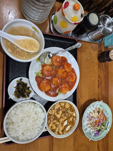 ちゃんとした中華なのに飲み食べ放題3600円はすごいです。 この値段だと冷凍素材も使われてやむなしあってもですが、味こそ生より落ちるもののサイズの大きいエビは充分食べ応えありました。 餃子も美味しかったです。 麻婆豆腐は辛口にしたら猛烈にからかったです。 店主さんが優しくて明るい方なのもとてもなごみます。