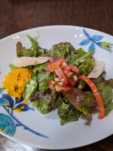 Read more田主丸の山苞の道沿いにある、ご夫婦で営まれているカフェです。一見普通の住宅に見えますが、中は綺麗にされていて、清潔感が感じられるものとなっています。浮世絵や古い年代物のステレオやコーヒー豆挽き(珈琲にはこだわりを持っておられるようです)等があり、清潔感の中におしゃれが効いたインテリアです。テラス席や庭もあり、特にテラスからは良い眺めを楽しむことができると思います。 ランチ時に行きましたが、ランチはセットがあり地元の食材を使ったピザやガレットやハンバーグにボリューミーなサラダがついてくるものがあります。いずれも美味しそうで、他にもスイーツが充実していました。コーヒーも美味しく、今度はコーヒーとスイーツを楽...