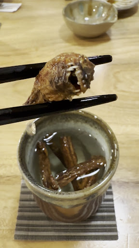 【スボ酒】 ワラスボの干物を炙って燗つけた日本酒へ🍶 見た目は《エイリアン》、 でもアミノ酸が豊富で栄養価も高い👽 身体もあたたまるし、寒い季節には最高です🔥