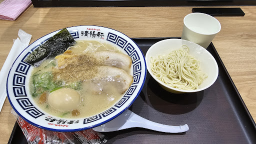 久留米市東町、西鉄「久留米」駅の駅ビル「エマックス・クルメ」2階、「くるめキッチン」フードコート内に出店されているラーメン屋です。フードコートとは言うものの、ラーメン屋専用のスペースが確保されており、カウンター席とテーブル席が十分に用意されています。駅ビルなので駐車場は周囲の有料駐車場を利用する事になると思います。注文は注文カウンターに設置されているタッチパネルで行います。料金を支払うと呼び出し端末が渡されるので、セルフサービスで配膳·下膳等を行います。さてラーメンですが、今回は「清陽軒」で扱われている中で最も基本的な「すっぴんラーメン」を頂きました。トロリと甘く、独特の豚骨臭がしっかりと表現された久留米系とんこつスープとなっています。麺は中細ストレート麺が使用されています。具はチャーシュー、キクラゲ、海苔、ネギといった構成の一杯です。大盛り対応なし、替え玉制あり、各種トッピング対応ありとなっています。「清陽軒」の特徴でもある味変用の卓上調味料類は商品受け取りカウンターにまとめて置かれているのですが、気軽に利用するにはやや気が引けるのがマイナスポイントではあります。ラーメンのバリエーションは「すっぴんラーメン」と「屋台仕込みラーメン」の2種類にそれぞれトッピング違いの数種類が用意されている程度。サイドメニューには定番の「久留米焼きめし」「焼き餃子」「冷やし手羽」やセットメニューが提供されています。全体的に、一応は「清陽軒」クオリティだと思います。因みに、開店当初に話題になっていた替え玉同時提供問題は、注文時に後渡しも対応出来るようになっています。しかし、なんだかなぁ。 こちらのお店は、久留米市諏訪野町に本店を置く「久留米ラーメン清陽軒」の西鉄久留米駅店として2024年4月に開業しています。「エマックス·クルメ」内の「味のタウン」の大規模改修に伴い、新たに設置されたフードコートスペースでの開業です。人通りはかなり多く賑わいはあるのですが、スペースがしっかり確保されているお陰で、それなりに落ち着いて飲食は出来ます。電車を降りたら直ぐにラーメンが食べられる...