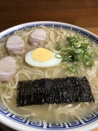 駐車場は隣のJAさんに停めさせて頂きいざ暖簾を潜り引き戸には 「焼き飯ありません」っと 同僚が先代がいた時の焼き飯が格別だったと聞いていました。無いものを惜しんでも味は想像できないから店内に入るとLの字のカウンターが10席程だろうか座敷のテーブル席もありました ラーメンと大飯を注文して暫く待つと先客のラーメンを作っているのがカウンター越しで見える大将がどんぶり一杯に集中して麺を茹でる時も鍋に集中して湯切りも水分によって折角のスープが薄くならないようにしっかりと何度も何度も湯切りして盛り付ける時も丁寧に一切言葉発せず盛り付けて、出来上がりのタイミングで女将さんがご飯を用意してイザ目の前に置かれたラーメンをみてビジュアルがもう、、これだよ久留米ラーメンって者はとマズスープが見た目はアッサリだけどしっかりと、コクがあり塩味もちょうどいい!!それに麺がまたいいモチモチで中太麺!俺等がガキの頃食べてたラーメンの麺ってこれだったよね⭕ 最近多くなって来たラー麦って本当にうまいですか?って思います。最後まで集中して食べたらスープまで完食していました。 いゃ〜ここは投稿をためらったのですがやっぱりラーメン通の人にも足を運んでもらいたいから本当の久留米ラーメンを堪能してください...