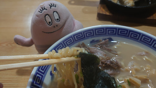 2023年6月20日訪問。豚骨ラーメン発祥の店との事で期待しつつ入店。時刻は12時。通常の飲食店ならばお客さんでごった返している時間なのだが…なんと、この店にはお客さんが一人もいなかったのである。加えて店主もあまり愛想がある方ではなかったので活気もゼロ。雰囲気最悪。 とりあえず入ったからには何か注文せねば…という事でカウンターに座り、ラーメンを注文。カウンターには大きな穴が開いており年季が入っている事が窺える。 店主が調理する音とテレビの音だけが響く店内で待つ事5分ちょっと。ラーメンが登場。 まずは香りを…うーん、豚骨の香りが弱い上に嗅いでたら何だか気持ち悪くなってきた。 香りで食欲が減退している中、スープを一口。 薄くてコクも旨味も皆無。塩水に申し訳程度豚骨の風味を加えたような感じ。マズすぎる。これが我々福岡県民が誇る豚骨ラーメンの元祖なのか…?正直うま◯っちゃんやマル◯イラーメンの方がよっぽど美味しいんだけど…。 軽く失望しつつも一縷の望みに賭けて麺を啜る。 コシはあるし麺自体は悪くはない…。が、ちぢれている上に太麺なのでコレジャナイ感が凄い。これが豚骨スープでなく味噌スープに入っていたならばどんなに美味しかった事か…。この麺は出会う相手を間違えてしまったのかもしれない。 諦めムードが脳内を支配する中、チャーシューを食べてみる。 うん、無駄に刻まれてるせいで肉を食べているという満足感が得られない。 とにかく早く口直しをしたくて麺を一心不乱に啜り込み完食。その後、会計を済ませ急いで店舗近くの自販機でジュースを買い、口直しを行った。 ちなみに私が入店してから退店するまでの約20分間で来店したお客さんは一人のみ。 人気の低さが窺い知れた。