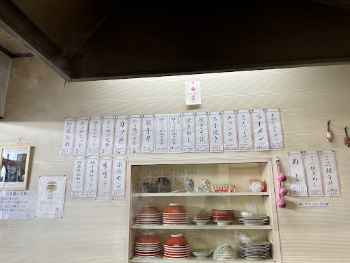 創業60年㊗️こんにちわ😋このお店は以前から気になってて時間帯的にジャストミーツだったんで店前の駐車場に停めいざ店内え!まぁ何とも言えない昭和を思い出す店内👍決めていたのわカツ丼笑店内をパシャパシャ写真に収めカツ丼が来たので実食!正直最初に食べたカツは脂コゲが少ししましたが後のはまぁまあ普通に美味しく食べました😋思ったのはカツの下の米さんが他とは比べて少なく牛丼でゆう汁だくでした。それもそれで美味しかったです。また違うものを食べてみたいと思います。お店の駐車場は店前に二台ぐらいしか停めれないと思ってましたが他のお客様は店横に歯医者さんの砂利の駐車場が有りますがそこに停めてました。たぶん貸りてるんでしょうね。追記コロナが落ち着いてきてますが現在も感染者が出ているため当分は2時までらしい事書いてました。他のお客様は卵焼きやちゃんぽん、焼きそばなど頼んでました。食べ終わり外に出ると良い匂いがしてました。あれは焼きそばでしょう笑笑食べた事有りませんが多分美味いでしょうね😋あの匂いならホルモンが相性良さげだと勝手に思いました。タイミング合えば行ってみてください。私はあんな昔から有る店は大概ハズレないと思ってるし雰囲気がなんか好きです。🫣2日続けて行ったんで編集今日は豚生姜焼き定食美味しく食べましたが飯が少なく感じたんで大盛りをお勧めします👍駐車場はやはり横の砂利の国道から三列位かりてるそうです。3連ちゃん今日はトン定 美味かった😋私も機会あればラーメン注文してみたいです😋なぜかとゆうと行ってみて頼めばわかります❗️ラーメン替え玉を❗️食べてないので、残念ながら味わまだわかってませんが💦他のお客様との大将との会話聞...