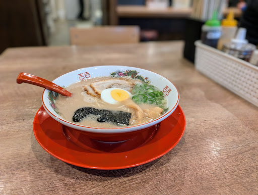 Read moreここ最近で食べた豚骨ラーメンでは…超絶品👍✨✨ クセも強過ぎず,しかし上品ながらも…しっかり豚骨ラーメンしてるし,何よりも…しっかりとした飲み干してしまう程の美味でまろやかな豚骨スープに,しっかりとした存在感のシナチクに惜し気もなく散りばめられた刻みネギの風味がこの一品を包み,その奥から…たしかに自分の嗅覚を刺激する,炙りチャーシューの香ばしい匂いがたまらない🎵 一つ一つにちゃんと手間の掛けられた素材達が…丼🍜の中で綺麗に飾られて,感動を与える一杯のラーメンになっていた。 口の中で…一噛み毎に,その絶品スープと共に…それぞれの丁寧に手掛けられた素材達の旨味をブレンドしながら,俺の喉の奥へと流れ込んで行き…俺に感動と喜びをもたらしたこの一すすり💦💦 セットの塩豚丼も…絶品✨✨ しっかりと塩味を纏いカリッカリに焼かれた豚肉と,真っ白なご飯とのコラボも超たまらない💫💫 そして…あろう事か,11:00~15:00の間は…ラーメン食べられたお客様が望めば,替玉一杯分は無料サービスと言う心意気👊👊 ただ安いだけで…豚臭い汁の,トッピングも…枯れかけたシナチクと,旨味の飛んだ…サンポーの焼豚ラーメンに入ってるチャーシューよりも薄く,旨味は無いが…とりあえずチャーシューの入ったラーメン食べるより,何百倍も…「豚骨ラーメンって…これだよな!!」って感動し納得して食べる事の出来た,超絶品豚骨ラーメン✨✨ いつまでも…この美味いラーメンのままでいて下...