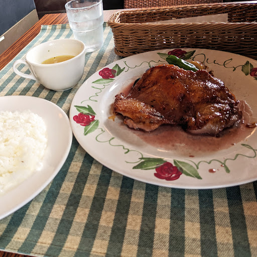 2023年5月の金曜13時ごろ入店(初回) ハンバーグとグリルチキンのコンビ、食後にコーヒーのセット¥1,470をいただきました。 (我が家にとっては、とても楽しみな、たまの贅沢です♪)