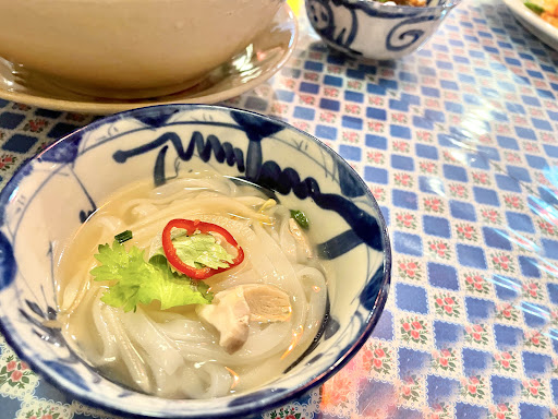 フォーガーはフォーの鶏肉うどん。フォーを食べてみたかったのでオーダー。香物として、シソ・パクチー・レモンを出してくれます。 そのままで食べると鶏白湯のような味、レモンやパクチーを入れると爽やかな風味に変身。 めちゃくちゃ美味しいです!!!!