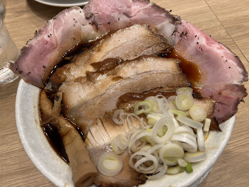 黒竹+限定チャーシューを頂きました。 塩辛さより旨味が勝るのは最早もちろんで、芳醇なたまり醤油?の香りと風味が半端ではありません。 僕は好きですが、香ばしい苦味とも感じる風味の強さは好みがあるかもしれません。 レアチャーシュー、勿論美味しいです。限定チャーシューの豚も美味しく、これからどんなチャーシューとで会えるのか楽しみです。 ちなみに今回の豚、味はもちろん、赤身と脂のバランスがどれも良く、仕事の確かさが伺えます。