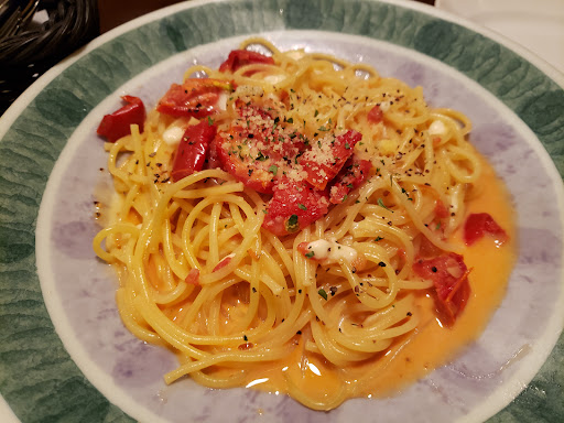 パスタは、「チーズ別」で頼んだけれど、チーズ抜かれてました。 えぇ〜、タメ口で復唱までしてたのに間違ってるやん…と思い…。 そして、これ一回冷めたやつをレンチンしたんじゃない?というくらいお皿がアツアツで、乾燥した麺が固まってました。