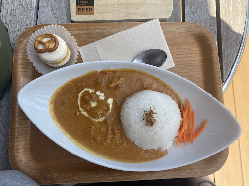 We had the most delicious meal here during our cycling trip around Lake Biwa! We got the butter chicken and salted caramel macaroons. The butter chicken was savory, flavorful, and well spiced. It was advertised to be really spicy, but wasn’t bad at all. The macaroons were so creamy and delicious; some of the best we’ve had. The workers were kind, friendly, and accommodating for English speakers. We enjoyed our meal outside on the patio, and admired the views of the lake. If you’re cycling as well, they have great bike parking in the front. Highly recommend and would love to come back...