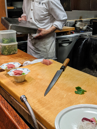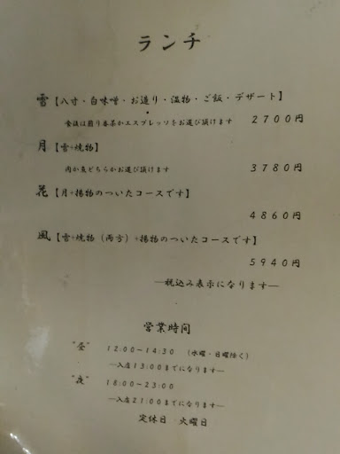 I really enjoyed the meal here. We didn't go at lunchtime so we didn't have to wait 2 years for a reservation. We went on a Sunday evening and ordered the 6 course meal for 6,500 yen plus the steak from the menu at 2,500 each. Total bill was 18,250. We arrived at 6.20pm and left around 9.00pm . Time flew bye... We sat at the counter and during our seating the restaurant had 7 other covers. The restaurant is unfussy, casual, but the service is friendly and calm. I wonder what it's like during lunch sittings? Anyway the food was good, everything hit the spot and was exceptional except a serving of Sashimi with iced onion topping (i'm not sure what they were going for with that but the tastes were lost). Anyway we're going again when before my better half leaves...