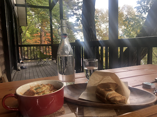 Second visit, came before check out for an iced coffee and red bean bun. THE BEST ! Usually we take out our coffee iced and black and iced. When served, option to add your own sugar and milk, as a treat I added the milk, it was so thick, rich and cream like, delicious! The Red Bean Bun was so tasty, we actually ordered two more to go, for our journey back to Tokyo. Friday 9.30am, super quiet, we sat outside on the small balcony, enjoying the weather and view ❤️
