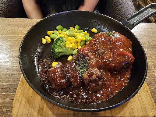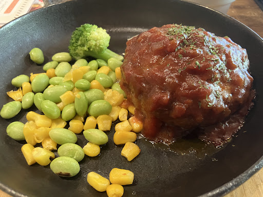 最後の異物付着に対する対応が好ましくなかったのが残念です。 ランチで訪れました。お料理は近江牛のあらびきハンバーグデザートセット+αでカレー(+100円)を注文。 それまでの応対は気持ちのよいもので、なんの不満もなく楽しい食事ができました。最後にデザートの一部にビニールの端のような異物が付着しており、普通に伝えた所、かる~く「ぁ…すいませーん。」と一言あってからその付着していたもの持ってキッチンへ。確認しに行ったのか何なのか…はい、その後そのまんま、何もなかったかのようにそれで終了。 いやいや、子供と来ててこの異物が子供の方だったら物凄く嫌ですね。 というか、その捉え方の問題なんです。 髪の毛じゃないし、危ないものでもないからまあ大丈夫、とかこれくらい…という感覚が怖いです。多分ですがキッチンの方もホールの方も軽く捉えてるからこんな対応なのでしょう。 違いませんか?どんな理由であれ、どんな異物であれ、あってはいけないんですよ。キッチンの方も(又は店長?)さんもキッチンに確認してたとえばパンをいれてた袋でした…等原因を言うとか、もう一度来てきちんと謝罪するのが筋ではありませんか? あんな軽さで済まされる(会計時でも何もなかったように普通に終わりました)その混入に対する意識の低さが怖いと思いました。 お値段もまあ、リーズナブルで夜も来ようかな、と思っていた矢先なだけに非常に残念でした。 ドリンクバーは種類が少なく、子供が飲めるのはオレンジジュースとウーロン茶しかありません。もう1つリンゴジュースくらいはあったら嬉しいかな、と思います。ホットコーヒーのコーヒーメーカーの使い方がよく分からず、多分濃さや量等が調節できるのは見て分かりましたが、動かしていいのかどうかもわからないし、パッと見て一瞬躊躇したので説明貼るとか何か工夫して欲しいと思いました。 あと、カレーとご飯はできればサラダバーのように自分で取れるものだと嬉しいかなぁ。(スペースないので厳しいでしょうね) いちいち店員に告げてまた、すぐに出てきません、軽くコーヒーを一杯ゆっくり飲むくらいは待たされます。のでカレー頼まれる方は(おかわり)早めに言った方がいいです。味はお肉も柔らかくて非常に美味しかったです。お野菜ゴロゴロのカレーではありませんが野菜の細かさを見ると多分ですが、余った野菜...