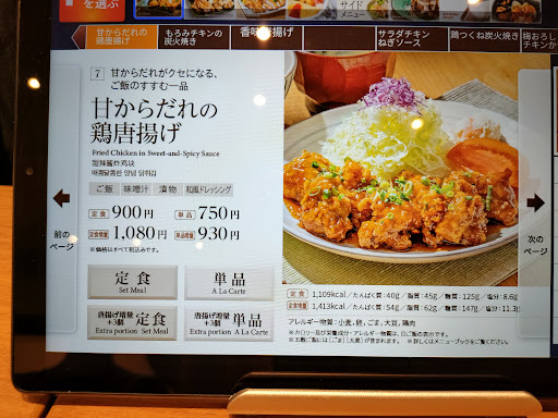 タッチパネル式でメニューにカロリー表示がありよかったです。