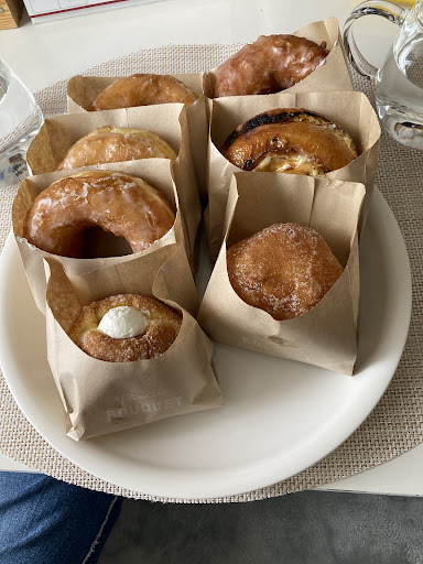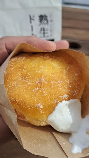 The treats are freshly made at a cute food truck. The standard donut dusted with sugar and the cocoa powdered, chocolate donut with chocolate cream filling ( limited edition ) were both absolutely luscious. Both were very sweet and yet not overly oily. The standard one in particular blew me away by its unbelievably fluffy, soft and chewy dough which I had not experienced before.