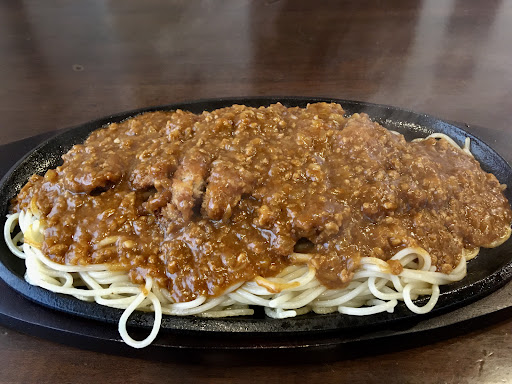 ミートカツスパゲッティ ソースは結構甘めで子供が好きそうな味 カツはもちろんサクサクで厚みもある