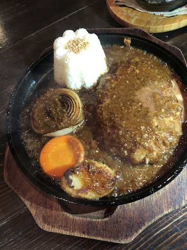 Read more此方のジジも安定の味わいです。 カマンベールチーズハンバーグとチーズバーグを頂きました。 美味しさは肉質は上等ですし、スパイシーなソースは香りから食欲を刺激し、味も満足させてくれます。 カマンベールチーズが2個も乗ったハンバーグはボリュームもあり、スパイシーなソースがハンバーグもカマンベールチーズも引き立てます。 チーズバーグは肉質に合いすぎで食べ過ぎてしまいます(笑) 熱々の鉄板は嬉しい点ですけど紙エプロンでよいので欲しいですね。 本当に美味しいハンバーグが食べたい時に伺っ...