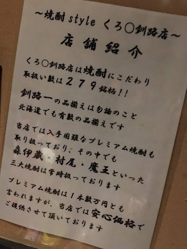 Charcoal-grilled Chicken & Sake "Kuromaru" Kushiro Sakaemachi kōenmae
