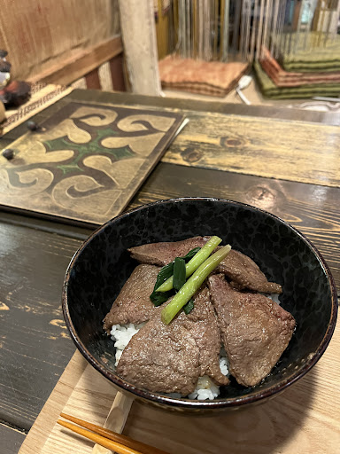 I had the venison (deer meat) rice bowl and it was great. For 1200 yen, it had five slices of venison lightly seared topped on a portion of rice and the slices were neither too thin to feel unsubstantial nor too thick to be difficult to chew. I appreciated that seasoning seemed minimal, which meant that one could taste the natural flavors of the venison. I would say I like venison as it has hints of an offal taste and that goes well with the plain rice.