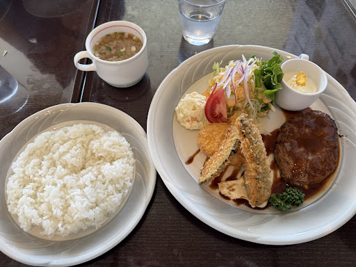 知人と母と三人でお邪魔しました。 現地待ち合わせで、自宅から往復一時間圏内の為、歩いて行きましたが、私と母は初めてだったのと、スマホを忘れてしまい、マップを見られなかった為、場所が少し分かりにくいと感じました。 中はゆったりくつろげる雰囲気で、私は一階でしたが、二階もあるとお聞きしました。 ハンバーグ、カキフライ等を頼んだら、早くは出てこなかったですが、我慢できる範囲だったのと、混んでいたので仕方がないかなぁと。 カキフライはサクサクしていて美味しかったです。 値段はお手頃に感じ、お料理は本格的な感じでした。 私が伺った時はお客様が沢山いて、人気があるお店みたいです。 店員さんは感じがよく、景色も良いので、デートにもいいと思いました。 今...