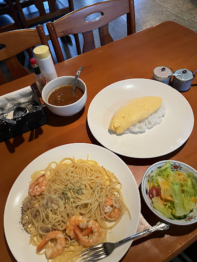 Read more軽食喫茶としてはごく普通だと思います。店内は昔懐かしい感じで、音楽では無く、ラジオが流れていました。軽食は飲み物とセットで¥1000円位で、飲み物だけなら¥300円です。店主は物静かな感じです。駐車場は一台停める場所が有るかどうかですし、この店の場所はとても解りずらいです。どちらかと言うと軽食店で喫茶と言う飲み物はあまり無いです、なのでレストランなのでしょう。私の食べたパスタは味付けが少し薄く、相方の食べたハンバーグはデミの味が少し焦げたしょっぱい感じでしたが、手間隙かけた美味しいサイドメニューと手作りハンバーグでした。量が結構有るので、大食漢の方には良いかと思います。今回は口コミを頼りにここに来ましたが、何度も通ってる道なのに、この場所に店が有るのは、初めて知りました。コロナ対策はしてないです。もしかして店主がもの静かで、余り話さないのは、コロ...