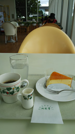 ケーキを頼んでカフェコーナーで一休み。 珈琲は無料で頂けるのでケーキ代だけでほっこり時間を過ごせます。(目線の先にはスタバさんが見えます(笑)) 珈琲はとても濃いインパクトのあるお味です。