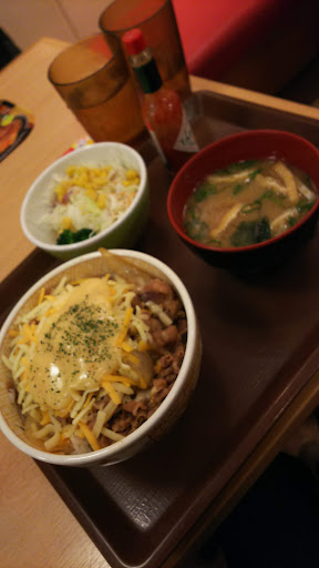 Read more初めて来店し、店員さんは三人いて、内女性二人に応対されました。 一人は笑顔もあり、声のトーン等も感じが良い店員さんでした。 もう一人のポッチャリ体型の方は、全く笑顔がなく、最初のお冷やを運んできた瞬間から、何であんなにムッツリしているのかな。とすら思いました。 他のすきやさんも行きますが、こんなに感じが悪い人は初めてだとも。 安いお店でも対応が悪いと次に行く気はしなくなります。 私は3種のチーズ牛丼、恋人は、牛すき鍋を...